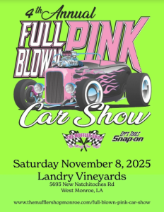 Join us at Landry Vineyards for a fun-filled day of cars, community, and cause! The 4th Annual Full Blown Pink Car Show will feature awesome vehicles, delicious food, Landry Vineyards wine, and loads of fun for the whole family. Live music to follow.